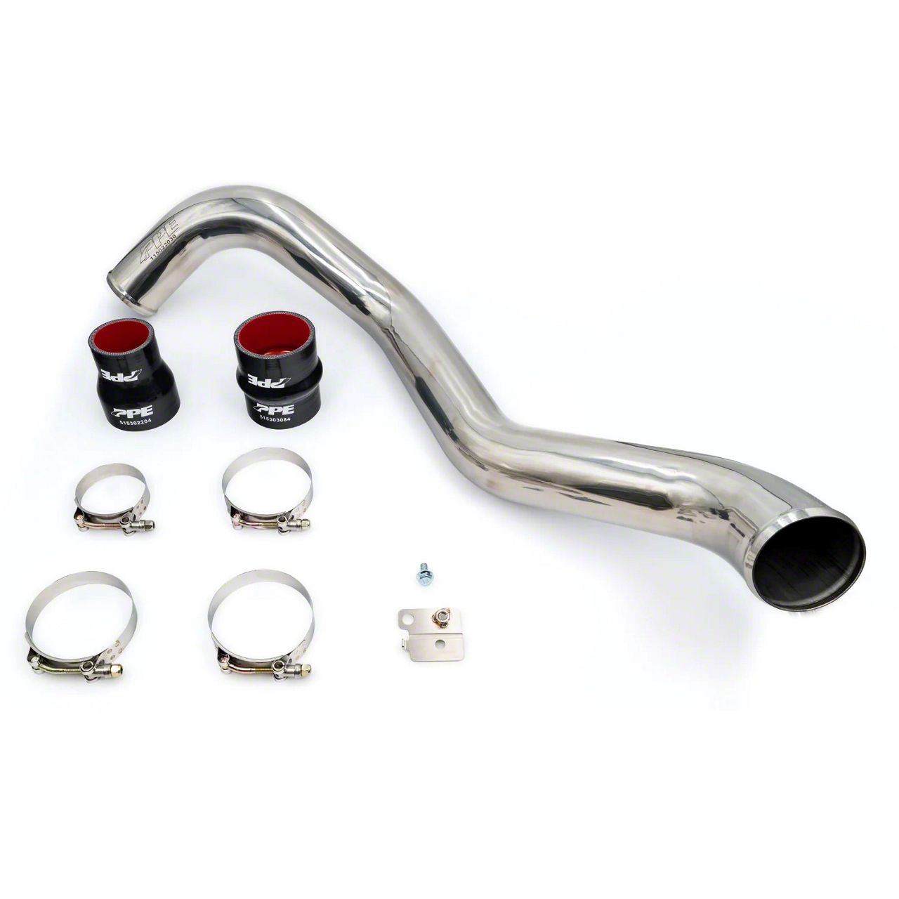 Maximized Airflow. The PPE Hot Side Intercooler Charge Pipe is meticulously engineered to optimize airflow to your Duramax engine. By replacing the restrictive factory pipe with a larger diameter, smoother flowing design, this charge pipe minimizes turbulence and pressure drop. This results in a significant improvement in airflow, allowing your engine to breathe more efficiently.