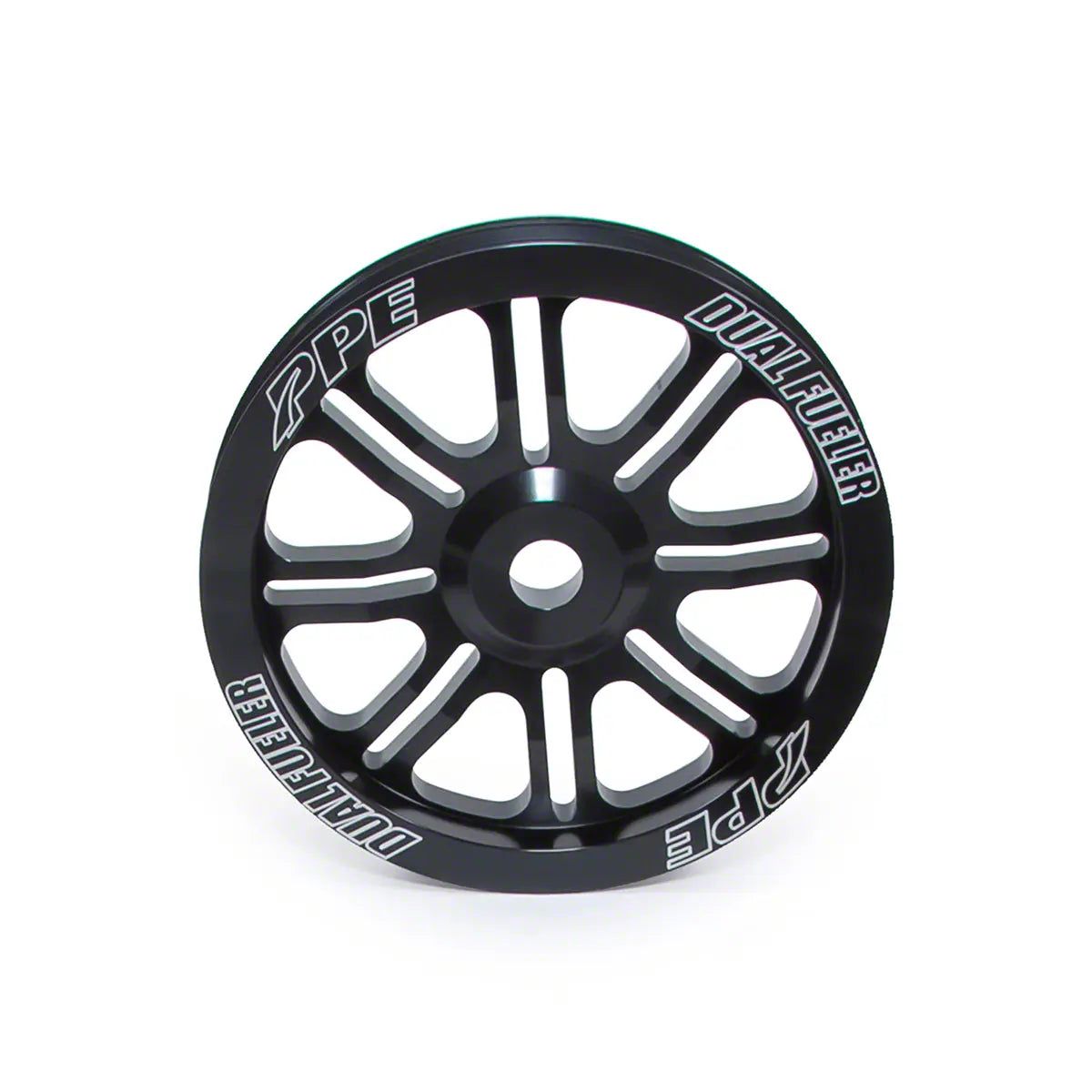 Made from machined billet aluminum and then anodized for strength and style. The new PPE Dual Fueler Pulley Wheel features a more robust design with machined spokes to dress up your engine bay.