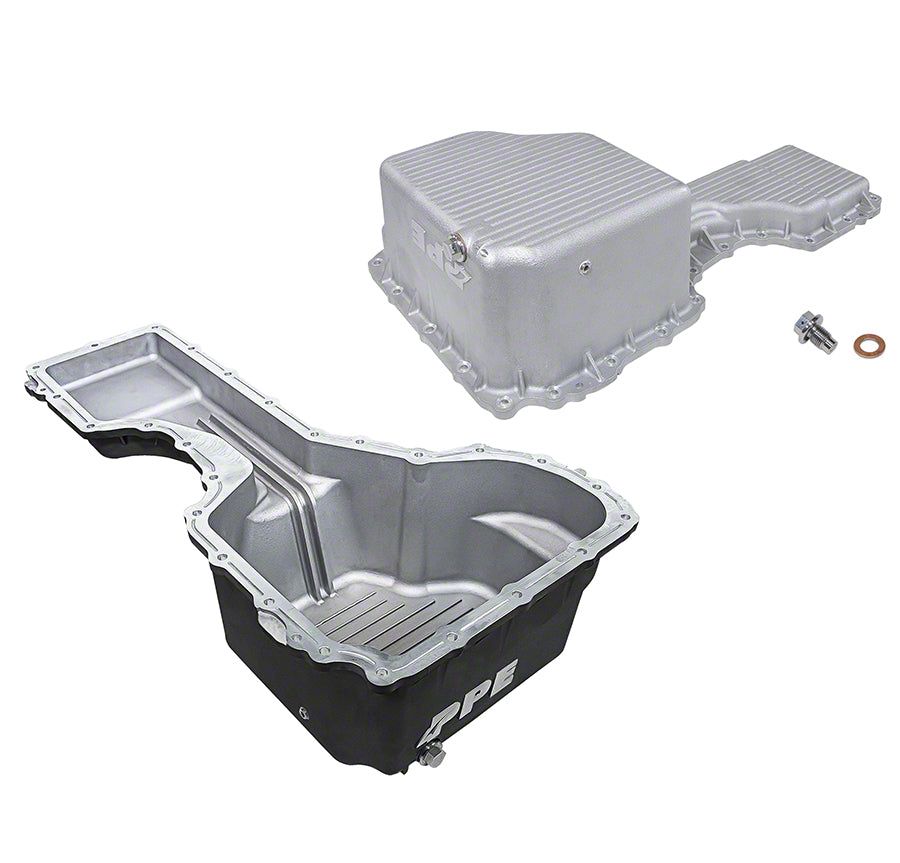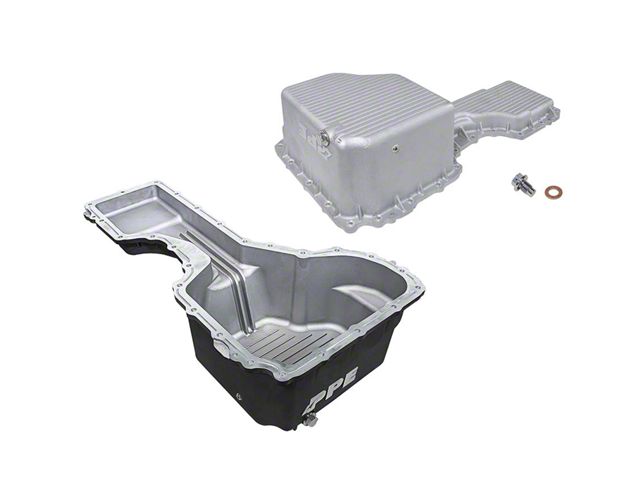 Optimized Engine Performance. The PPE Heavy-Duty Deep Cast Aluminum Engine Oil Pan in Black is a superior upgrade for your vehicle's oil management system. Crafted with precision and quality, this oil pan is designed to enhance the performance and longevity of your engine. It holds a full quart more than the stock unit, providing ample space for oil storage. It is also equipped with deep external cooling fins that efficiently dissipate heat, promoting cooler engine operation.