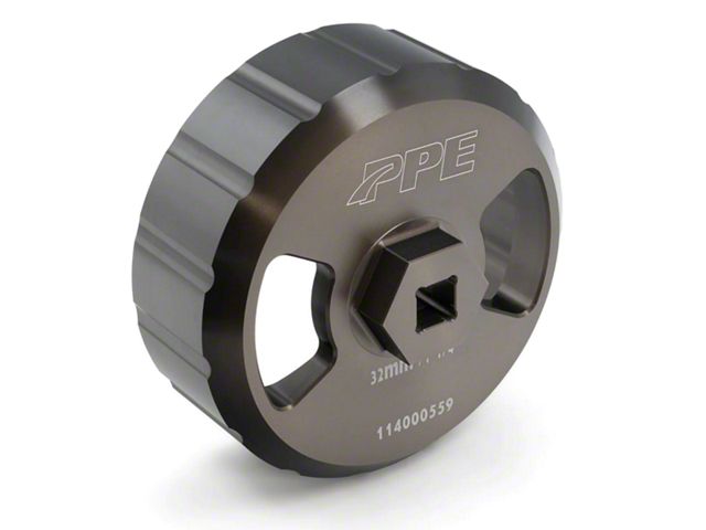 Description. Get a firm grip on the giant PPE Engine Oil Filter for the 2001-19 Duramax engines. Easy filter install and removal with this specialty socket.Manufactured with CNC machined 6061-T6 billet aluminum with a Madras Bronze anodized finish. This socket takes a standard 1/2-inch drive or a 1 1/4-inch (32mm) socket.Madras Bronze anodized 6061-T6 billet aluminumCNC machinedWorks with PPE 01-19 Duramax Engine Oil FiltersWorks with 1/2-inch square drive or 1-1/4 inch socket107mm 15-Flute