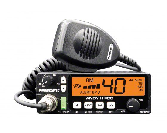 Application. This President Electronics Compact 40-Channel Mobile AM CB Radio has universal fitment.