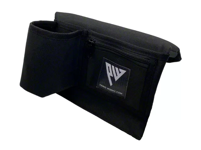 Integrated. Made for a universal fit, this Primo Workz Armrest is an easy-to-install passenger side armrest that's perfect for long drives and installs to the door panel. Built from matte black 600D canvas with YKK zippers, this armrest features an integrated cupholder and a zippered pocket for snacks and other small items.