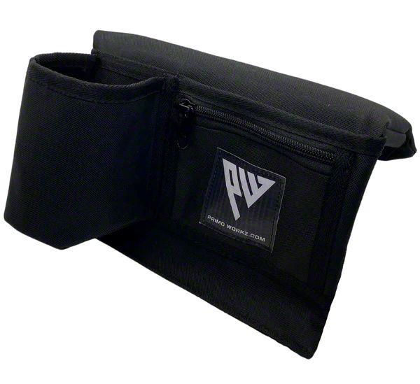 Integrated. Made for a universal fit, this Primo Workz Armrest is an easy-to-install passenger side armrest that's perfect for long drives and installs to the door panel. Built from matte black 600D canvas with YKK zippers, this armrest features an integrated cupholder and a zippered pocket for snacks and other small items.