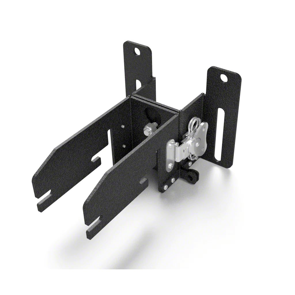 Construction and Appearance. Constructed from 1/8-inch steel, these brackets feature a durable black powder-coat finish. They are equipped with integrated lock tabs for added security and stability and include rivets to prevent tampering.