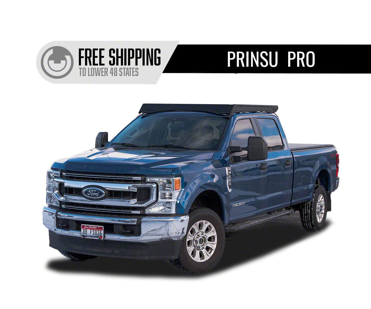 Strengthened Utility Roof System. The Prinsu Pro Roof Rack with Standard Wind Deflector is a robust cargo management solution tailored for 2017 to 2026 Ford F-250 Super Duty SuperCrew models without cab lights. With a redesigned crossbar structure that is 44% stronger than its predecessor, this system is engineered for overlanders, contractors, and anyone needing secure rooftop storage without compromising durability or aesthetics.
