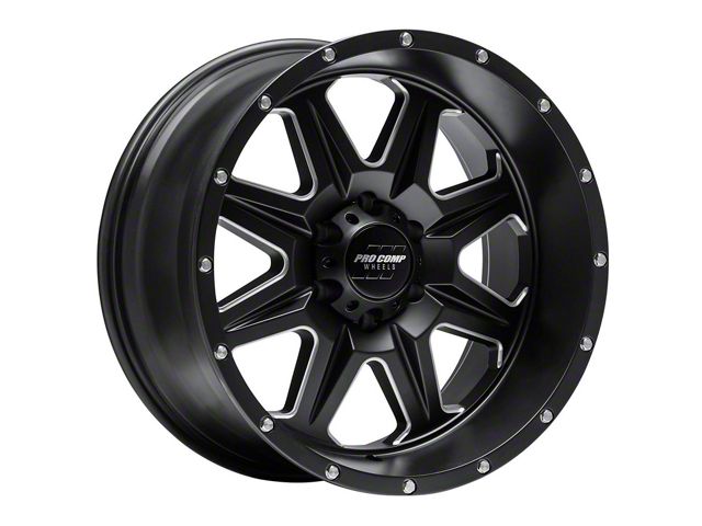 This 17x9 Pro Comp Wheels 63 Series Recon Satin Black Milled 6-Lug Wheel; 17x9; -6mm Offset is completed in a high-quality satin black finish with milled accents that will offer a striking contrast that will make you the envy of everyone.