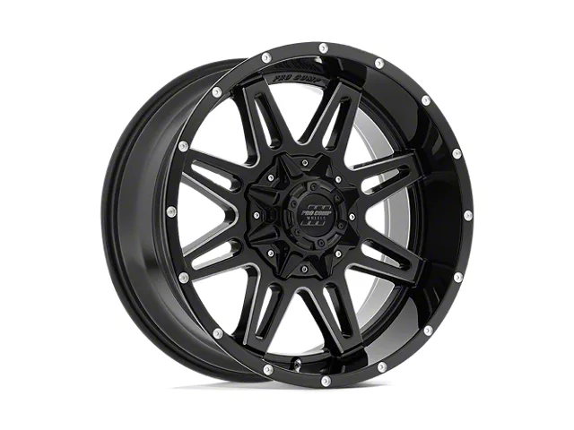 The 20x9.5 Pro Comp Wheels Blockade Gloss Black Milled 6-Lug Wheel is completed in a high-quality gloss black finish with steel milled accents that will be the envy of everyone. For added protection and good looks, there is a durable clear coat that withstands the rigors of everyday driving,