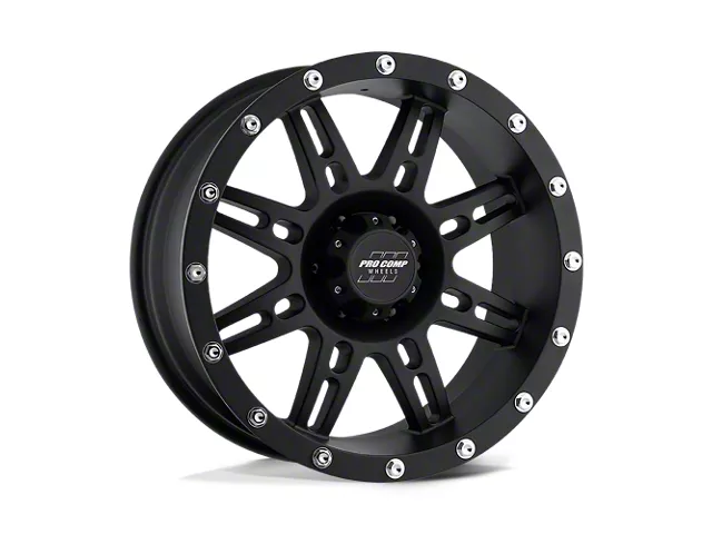 Pro Comp Wheels Stryker Flat Black 6-Lug Wheel; 17x9; -6mm Offset is a perfect blend of style and rugged design, making it a standout choice for those looking to enhance their vehicle's aesthetic appeal. Its bold, dark metallic finish pairs seamlessly with a wide variety of vehicle styles, offering both modernity and durability. Built by Pro Comp Wheels, this wheel is designed to elevate your vehicle's appearance with its robust presence.