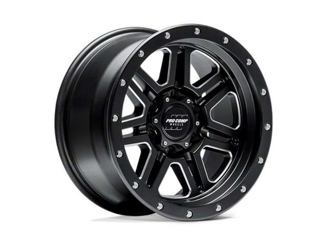 Pro Comp Wheels Apex Satin Black Milled 6-Lug Wheel; 17x9; -6mm Offset is a perfect blend of style and rugged design, making it a standout choice for those looking to enhance their vehicle's aesthetic appeal. Its bold, dark metallic finish pairs seamlessly with a wide variety of vehicle styles, offering both modernity and durability. Built by Pro Comp Wheels, this wheel is designed to elevate your vehicle's appearance with its robust presence.