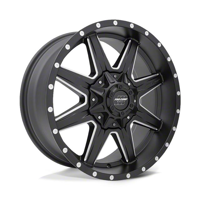 The 20x9 Pro Comp Wheels Quick 8 Satin Black Milled 6-Lug Wheel is completed in a high-quality satin black finish with steel milled accents that will be the envy of everyone. For added protection and good looks, there is a durable clear coat that withstands the rigors of everyday driving,