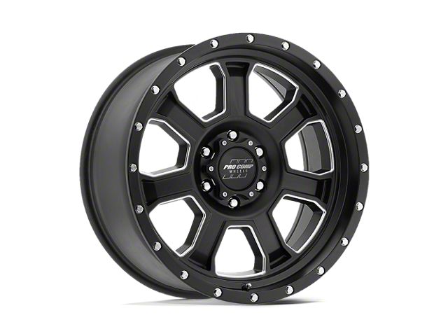 The 20x9 Pro Comp Wheels Sledge Satin Black Milled 8-Lug Wheel is completed in a high-quality satin black finish with steel milled accents that will be the envy of everyone. For added protection and good looks, there is a durable clear coat that withstands the rigors of everyday driving,