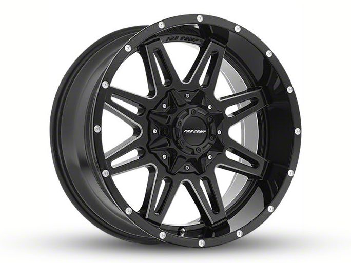 Pro Comp Wheels Blockade Gloss Black Milled 8-Lug Wheel; 20x9.5; -6mm Offset. Enhance your vehicle's look with the Pro Comp Wheels Blockade Gloss Black Milled 8-Lug Wheel. This premium wheel adds a touch of elegance and class to your vehicle, complementing its sophisticated aesthetic.