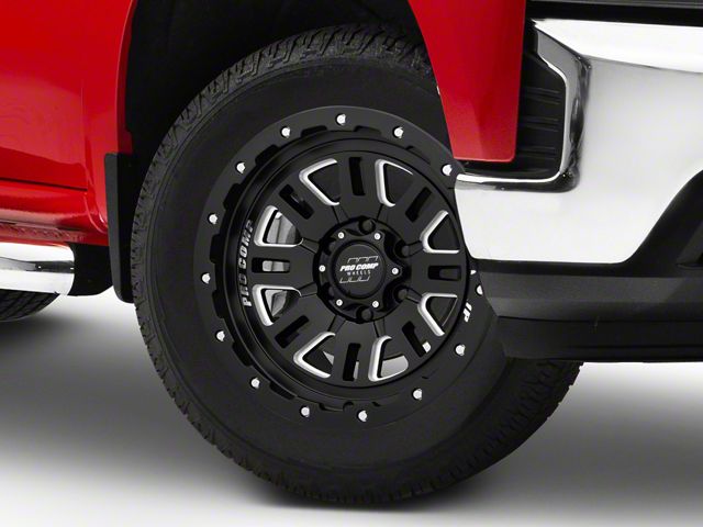 Application. This Pro Comp Wheels Cognito Satin Black Milled 6-Lug Wheel; 20x9; 0mm Offset, with a backspace of 5 Inch, 127mm and bolt pattern of 6 x 139.7mm (6 x 5.5-Inch), is designed to enhance alignment and driving stability, ensuring a perfect fit with the vehicle model. Specifically designed to fit 2019-2026 Silverado 1500 models, this wheel's specifications contribute to a seamless alignment and stable driving experience by ensuring the wheel fits perfectly within the vehicle's wheel well, reducing the risk of rubbing issues and optimizing handling characteristics. Sold individually.