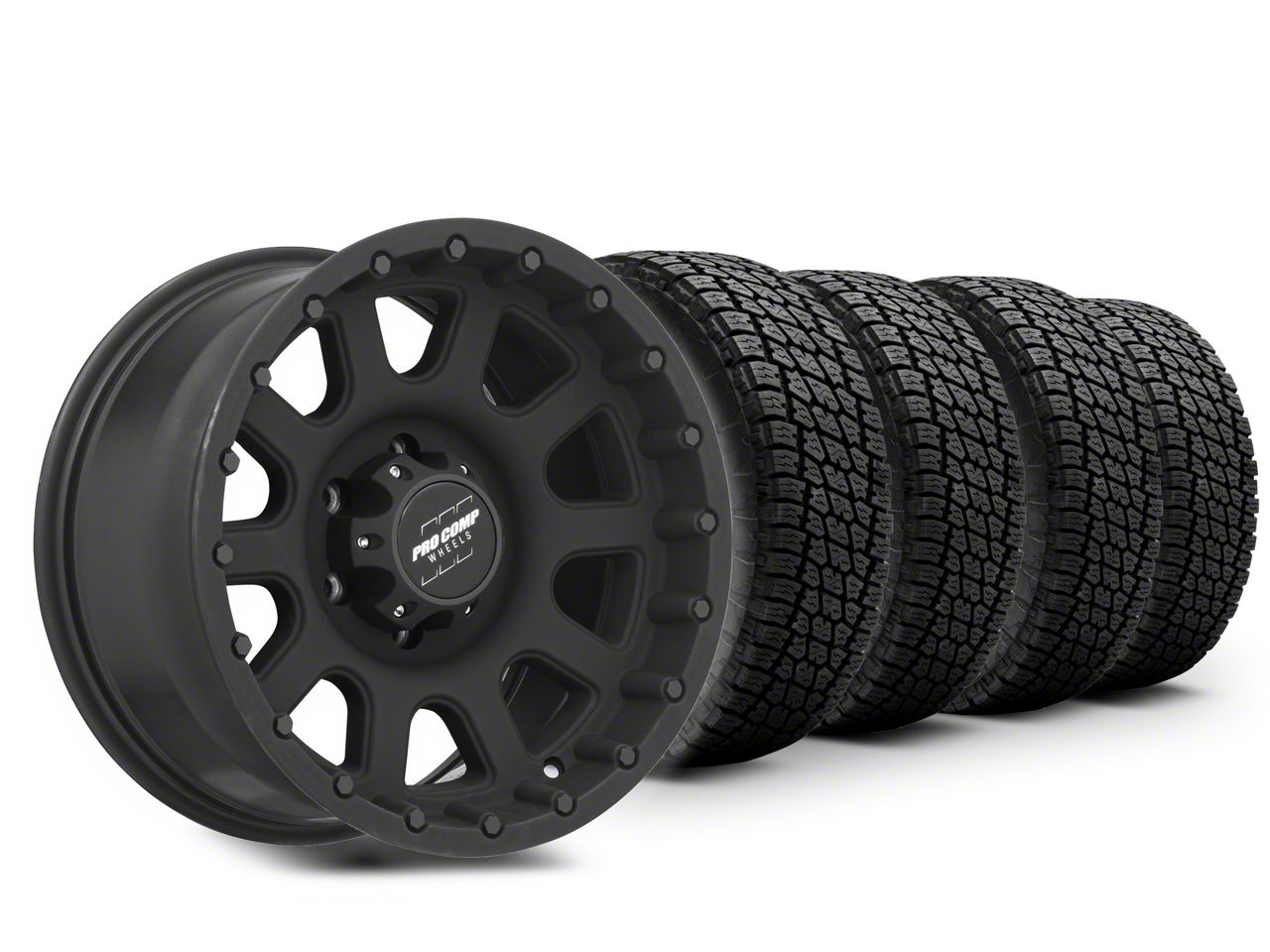 Mounted and Balanced Wheel and Tire Kit. This wheel and tire combo kit features (4) 17x9 Pro Comp 32 Series Bandido Flat Black 6-Lug Wheels and (4) NITTO Terra Grappler G2 285/70R17 tires that have been put together into an easy to buy kit that arrives to your door already mounted and balanced ready to be installed on your vehicle.