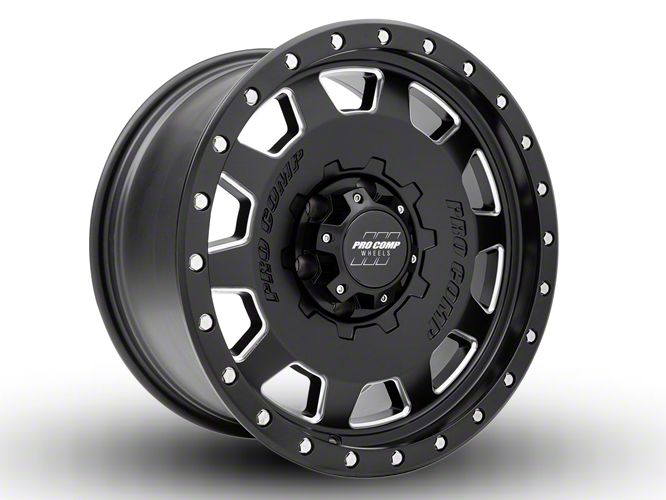 The 17x9 Pro Comp Wheels Hammer Satin Black Milled 6-Lug Wheel is completed in a high-quality satin black finish, with steel milled accents. Thanks to a durable clear coat, the finish looks amazing and also protects against the rigors of driving.