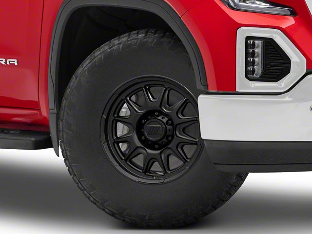 Application. This Pro Comp Pulse Matte Black 6-Lug Wheel; 17x8; 20mm Offset, with a backspace of 5.287 Inch, 134.3mm and bolt pattern of 6 x 139.7mm (6 x 5.5-Inch), is designed to provide not only a striking visual appeal but also to contribute significantly to the alignment and driving stability of the vehicle. Its specifications ensure a precise fit with the vehicle model, enhancing the overall driving experience. Built to fit the 2019-2026 Sierra 1500, this wheel is sold individually.