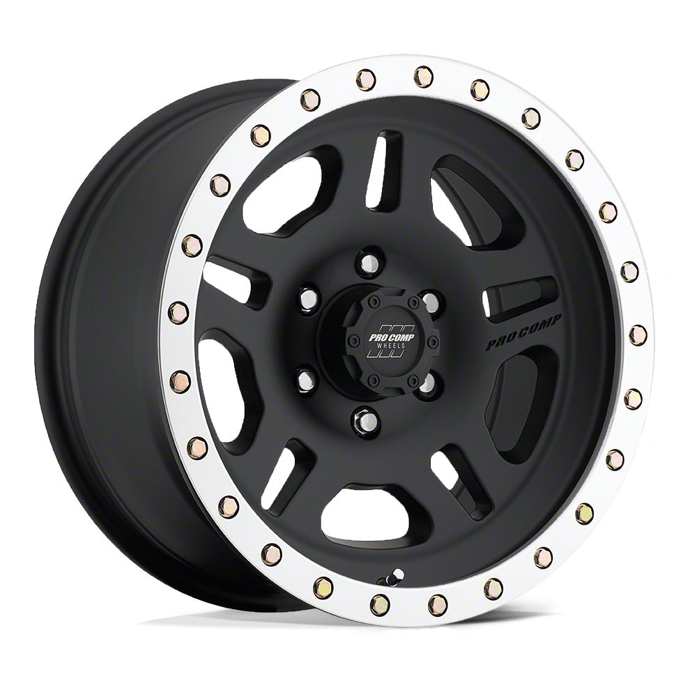 The 17x8.5 Pro Comp Wheels La Paz Satin Black Machined 6-Lug Wheel is completed in a high-quality satin black finish with steel machined accents that will be the envy of everyone. For added protection and good looks, there is a durable clear coat that handles the rigors of daily driving.