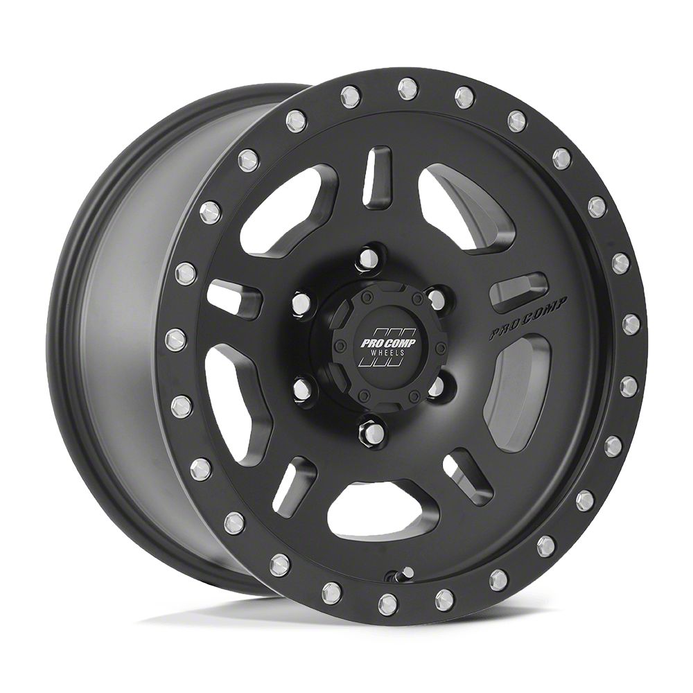 The 17x8.5 Pro Comp Wheels La Paz Satin Black 6-Lug Wheel is completed in a high-quality satin black finish that will be the envy of everyone. For added protection and good looks, there is a durable clear coat that withstands the rigors of everyday driving,