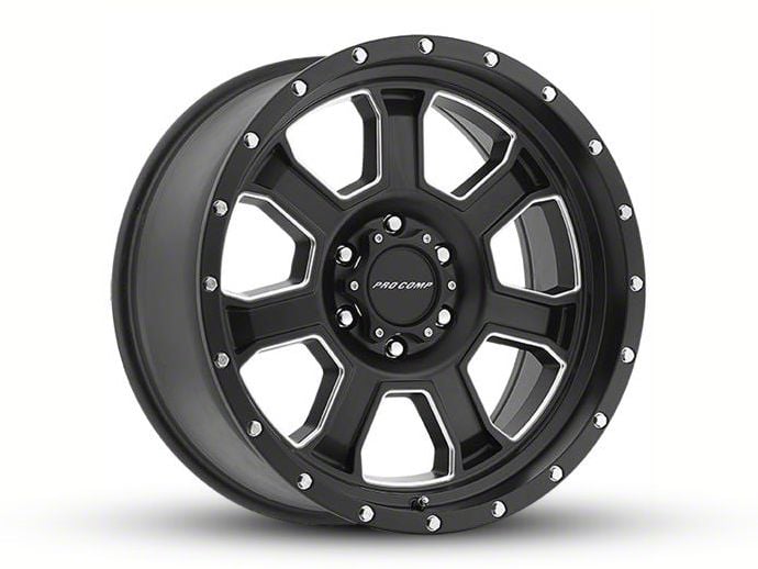 This 20x9 Pro Comp Wheels Sledge Satin Black Milled 8-Lug Wheel is completed in a high-quality satin black finish with steel milled accents that will be the envy of everyone. There's a durable clear coat that protects against driving hazards.
