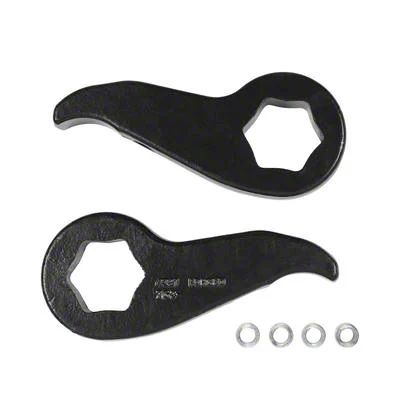 Construction and Appearance. Constructed using durable steel materials, this leveling lift kit is built to withstand harsh conditions while retaining the use of OEM upper shock spacers. It comes in a sleek black color, offering a clean and aggressive look that complements your truck's design.
