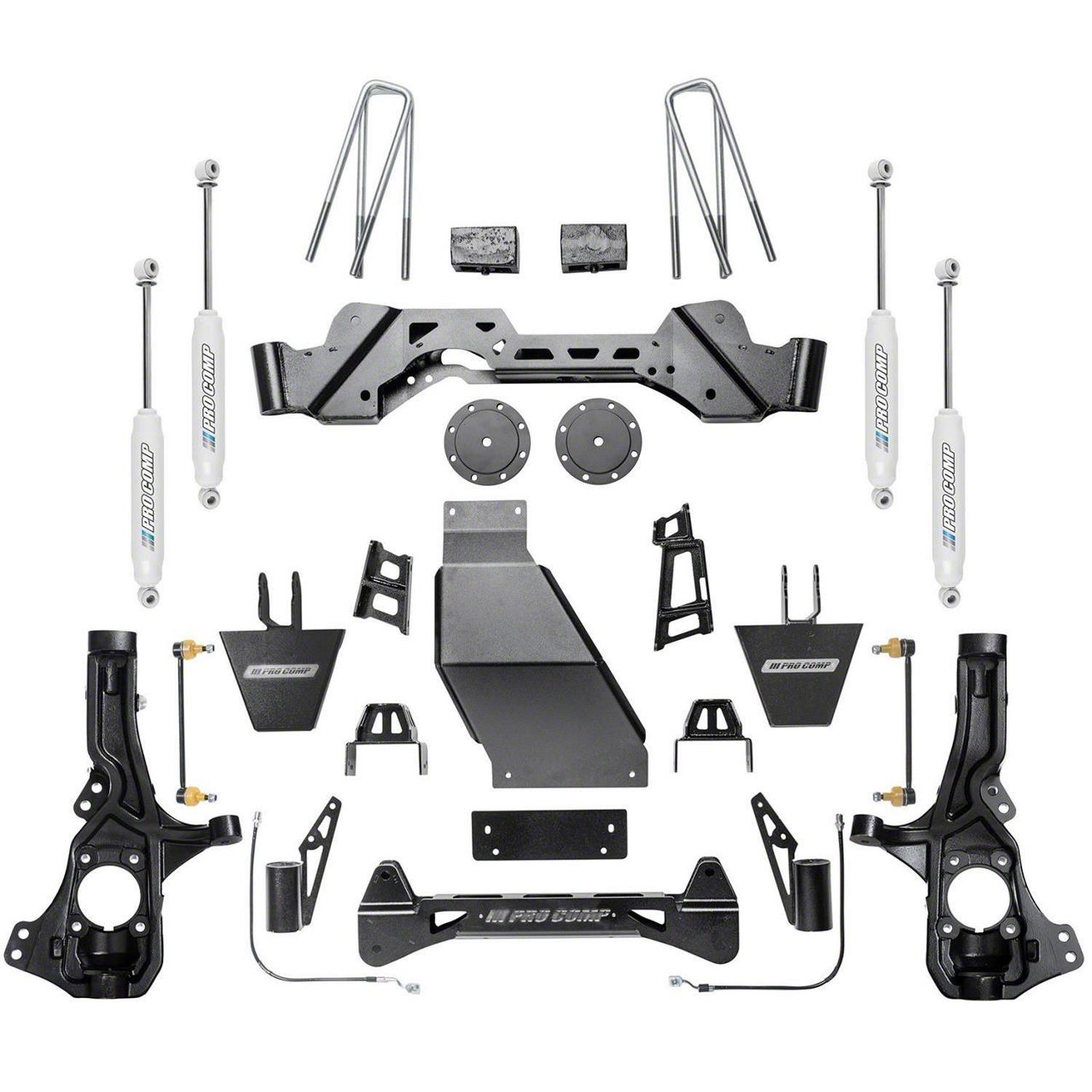 The ES9000 Shocks. The Pro Comp Suspension 5.50-Inch Stage I Suspension Lift Kit comes equipped with high-performance ES9000 shocks, which provide exceptional damping capabilities. These shocks effectively absorb shocks and vibrations, ensuring a smooth and controlled ride. They also help to maintain vehicle stability and reduce body roll during cornering.
