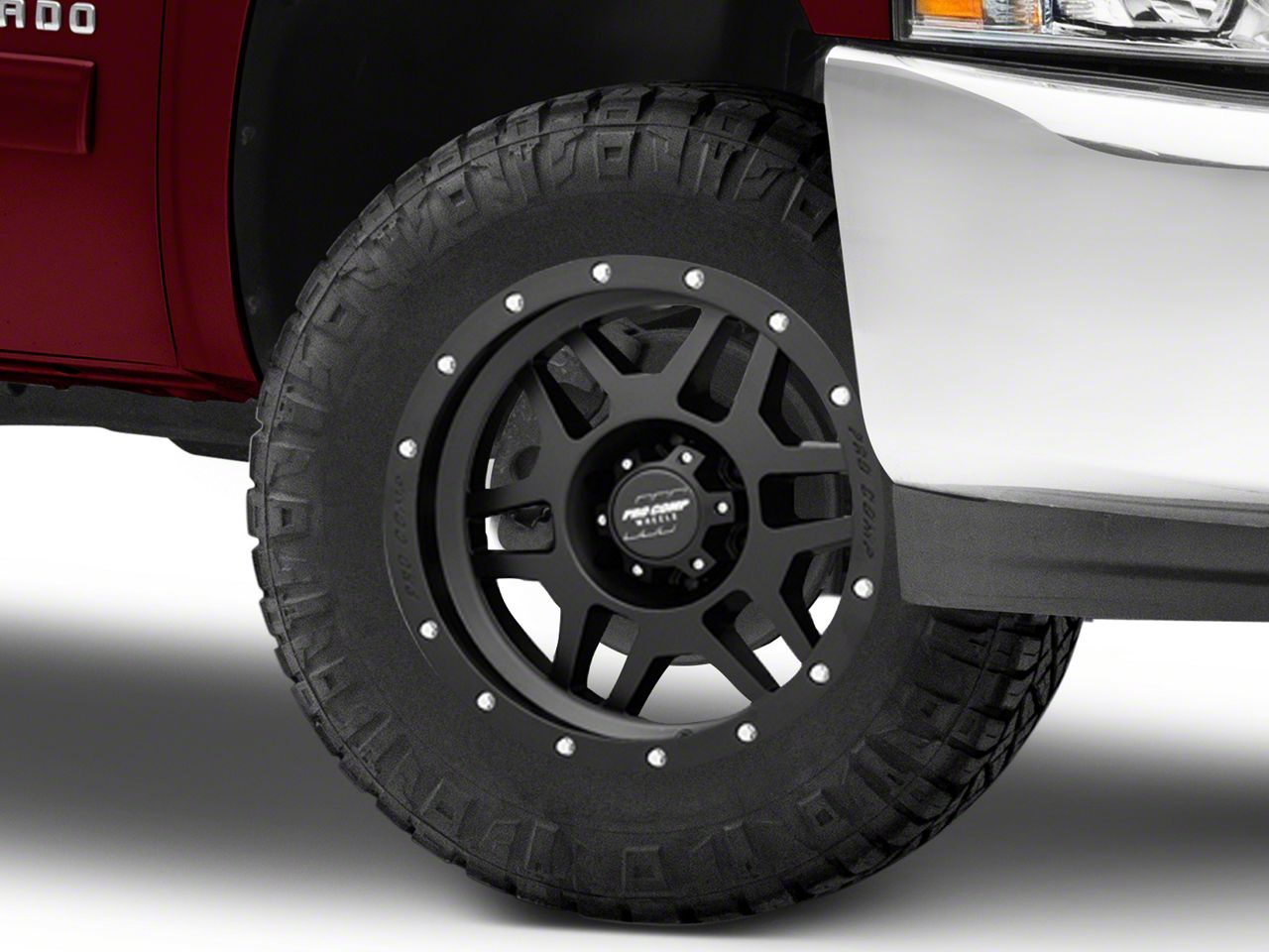 Application. This Pro Comp Wheels Phaser Satin Black 6-Lug Wheel; 18x9; 0mm Offset, with a backspacing of 5 Inch, 127mm; and bolt pattern of 6 x 139.7mm (6 x 5.5-Inch), provides enhanced alignment and stability. Designed to fit the 2007-2013 Silverado 1500 models, it offers precise fitment and is sold individually.
