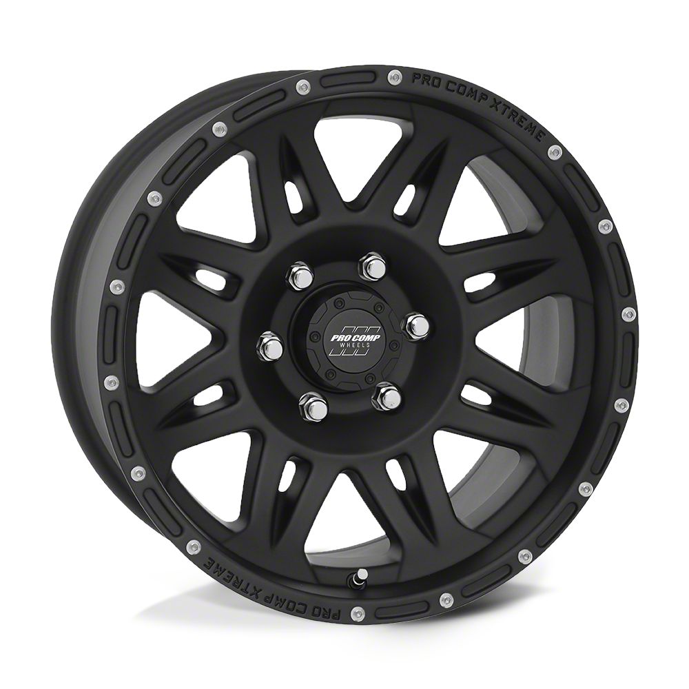 Pro Comp Wheels Torq Flat Black 6-Lug Wheel; 17x9; -6mm Offset The Pro Comp Wheels Torq Flat Black 6-Lug Wheel combines a sleek, sophisticated design with premium construction that enhances the visual appeal and complements a wide range of vehicle styles. This wheel is perfect for those seeking to make a bold statement while maintaining elegance and robustness.