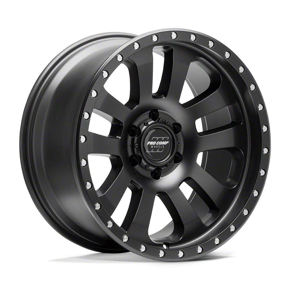 Pro Comp Wheels Prodigy Matte Black 8-Lug Wheel; 18x9; 0mm Offset The Pro Comp Wheels Prodigy Matte Black 8-Lug Wheel combines a sleek, sophisticated design with premium construction that enhances the visual appeal and complements a wide range of vehicle styles. This wheel is perfect for those seeking to make a bold statement while maintaining elegance and robustness.