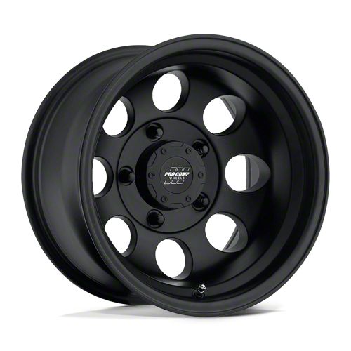 The 17x9 Pro Comp Wheels 69 Series Vintage Flat Black 8-Lug Wheel; 17x9; -6mm Offset is completed in a high-quality flat black finish, which will be sure to turn heads. For added durability and appearance, there is a durable clear coat that withstands the rigors of the road.