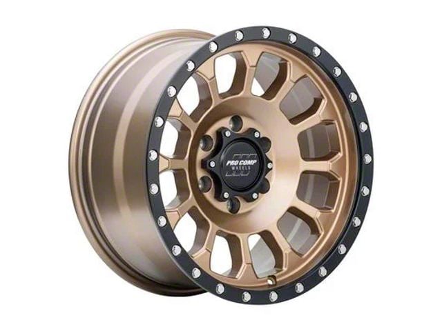 This 17x8 Pro Comp Wheels Rockwell Matte Bronze with Black Lip 6-Lug Wheel is completed in a high-quality matte bronze finish with striking accents that will be the envy of everyone. There's a durable clear coat that protects against driving hazards.