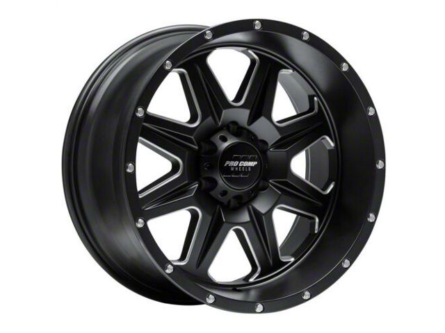 Satin Black Finish With Milled Accents. This Pro Comp Wheel features a high quality black powder coated finish with milled accents for an aggressive appearance that everyone will be envious of. For added protection and good looks, this Wheel features a durable, satin clear coat finish that is tough enough to stand up against the hazards of everyday driving - including road chips and pitting.