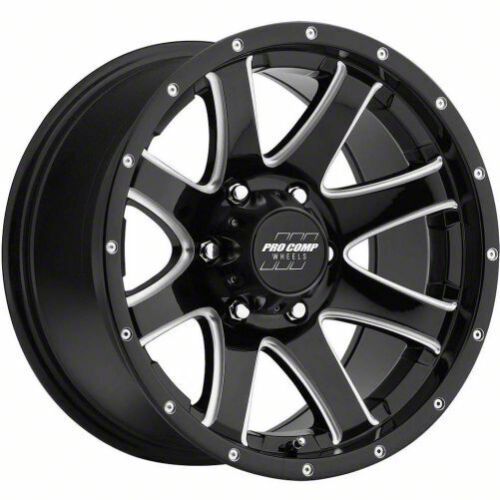 Gloss Black Finish With Milled Accents. This Pro Comp Wheel features a high quality black powder coated finish with milled accents for an aggressive appearance that everyone will be envious of. For added protection and good looks, this Wheel features a durable, gloss clear coat finish that is tough enough to stand up against the hazards of everyday driving - including road chips and pitting.