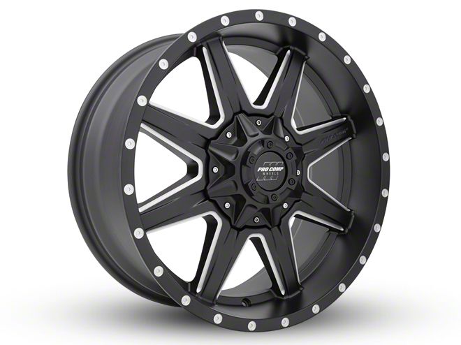 Pro Comp Wheels Quick 8 Satin Black Milled 6-Lug Wheel; 20x9; 0mm Offset. The Pro Comp Wheels Quick 8 Satin Black Milled 6-Lug Wheel offers a striking balance of style and refinement. Its unique design accentuates the vehicle's aesthetic, while the premium construction underscores its robust nature. This wheel is a perfect choice for those seeking both elegance and a strong visual statement.