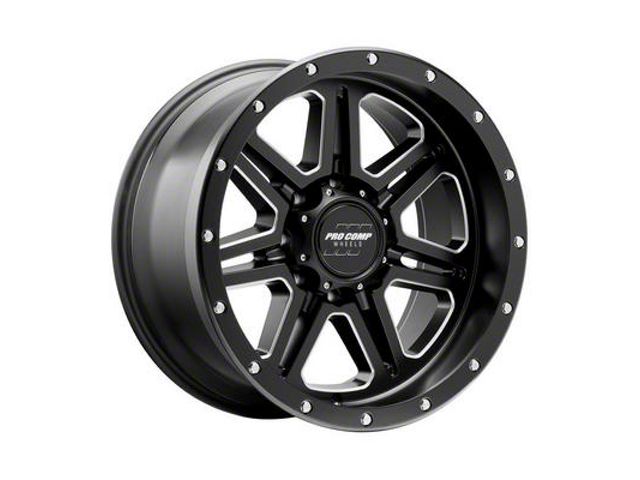 Satin Black Finish With Milled Accents. This Pro Comp Wheel features a high quality black powder coated finish with milled accents for an aggressive appearance that everyone will be envious of. For added protection and good looks, this Wheel features a durable, satin clear coat finish that is tough enough to stand up against the hazards of everyday driving - including road chips and pitting.