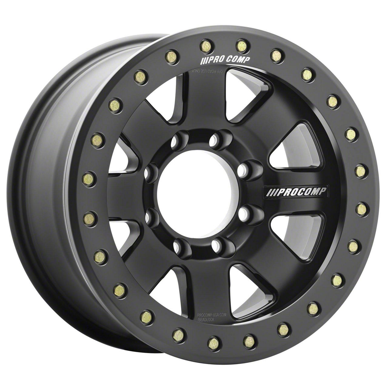 Formidable, High-Performance Trilogy Race Wheel. The Pro Comp Wheels Trilogy Race Satin Black 5-Lug Wheel is a beefy wheel that has been designed to bring out your truck’s exceptional handling. It measures 17x9 inches for excellent clearance and comes with a wide offset size for superb off-road balance. Meanwhile, its brawny beadlock design adds a battle-ready appearance to your vehicle, so you can command awe wherever you drive.