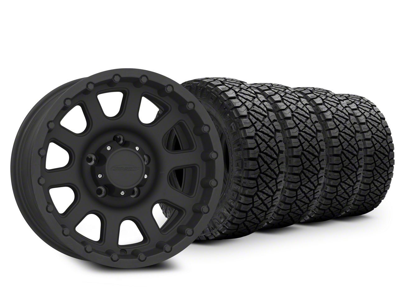 Mounted and Balanced Wheel and Tire Kit. This wheel and tire combo kit features (4) 17x9 Pro Comp Wheels 32 Series Bandido Flat Black 5-Lug Wheels and (4) NITTO All-Terrain Ridge Grappler A/T 285/70R17 tires that have been put together into an easy to buy kit that arrives to your door already mounted and balanced ready to be installed on your vehicle.
