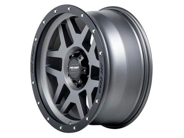 Pro Comp Wheels Phaser Matte Graphite with Black Lip 6-Lug Wheel; 17x9; -6mm Offset exudes sophistication with its finish, offering a sleek and modern appeal to any vehicle it adorns. The design is meticulously crafted to enhance the aesthetic of your vehicle, giving it a distinctive and upscale look. Perfect for those seeking to elevate their vehicle's style, this wheel blends seamlessly with both contemporary and classic vehicle designs, making it a versatile choice for a wide range of vehicles. Its robust construction ensures durability, making it a reliable choice for drivers who value both style and quality.