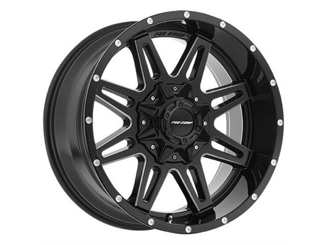Pro Comp Wheels Blockade Gloss Black Milled 8-Lug Wheel; 20x9.5; -6mm Offset. Enhance your vehicle's look with the Pro Comp Wheels Blockade Gloss Black Milled 8-Lug Wheel. This premium wheel adds a touch of elegance and class to your vehicle, complementing its sophisticated aesthetic.