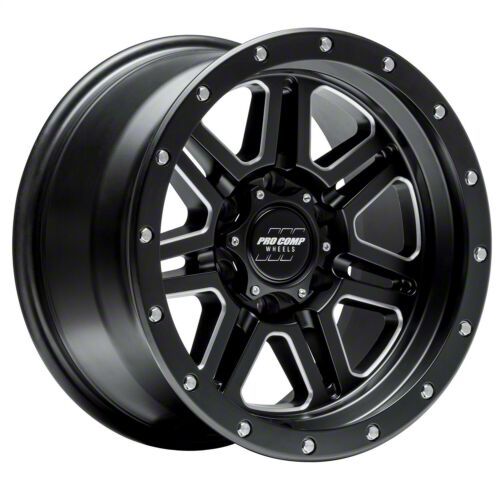 The 20x10 Pro Comp Wheels 62 Series Apex Satin Black Milled 6-Lug Wheel; 20x10; -18mm Offset is completed in a high quality, satin black finish. The milled steel accents are where it really shines through. The accents make the split section of the spokes pop along the faux beadlock.