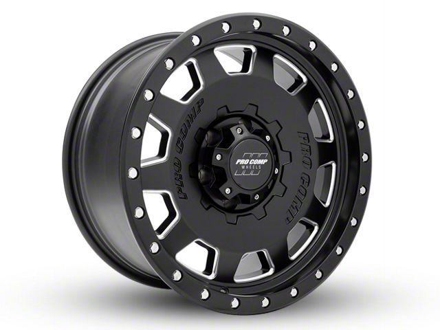 The 17x9 Pro Comp Wheels Hammer Satin Black Milled 6-Lug Wheel is completed in a high-quality satin black finish, with steel milled accents. Thanks to a durable clear coat, the finish looks amazing and also protects against the rigors of driving.