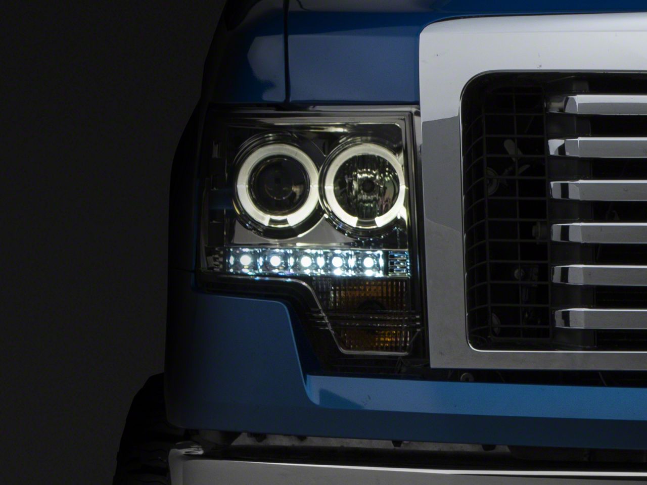 Bold Design. Upgrading lights on your 2009 to 2014 F-150 is a good way to start customizing your pickup. Once you have the LED Halo Smoke Projector Headlights installed, your F-150 will look sleek. These projector headlights have an aggressive, stylish look that will surely improve your F-150's look. The dual halo lights add a touch of class and will light up the road at night.