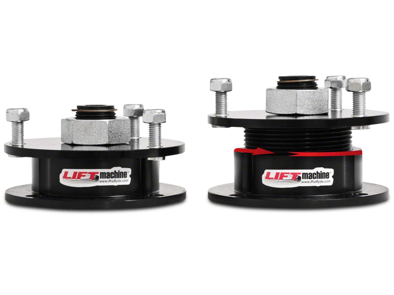 Increase Ground Clearance. If you want to lose the factory rake stance, but you aren't sure the amount of front lift you want, then this ProRYDE Adjustable Leveling Kit is the perfect solution. Featuring a patented on-vehicle adjustability, this leveling kit allows you to lift the front end of your truck between 1.5 and 2.25 inches, without hurting the factory ride quality and driving comfort. The additional fender clearance provides you enough room to run up to 32 in. tires for 4WD F-150s, 33 in. tires for 2WD F-150s and 35 in. tires for the SVT Raptor.