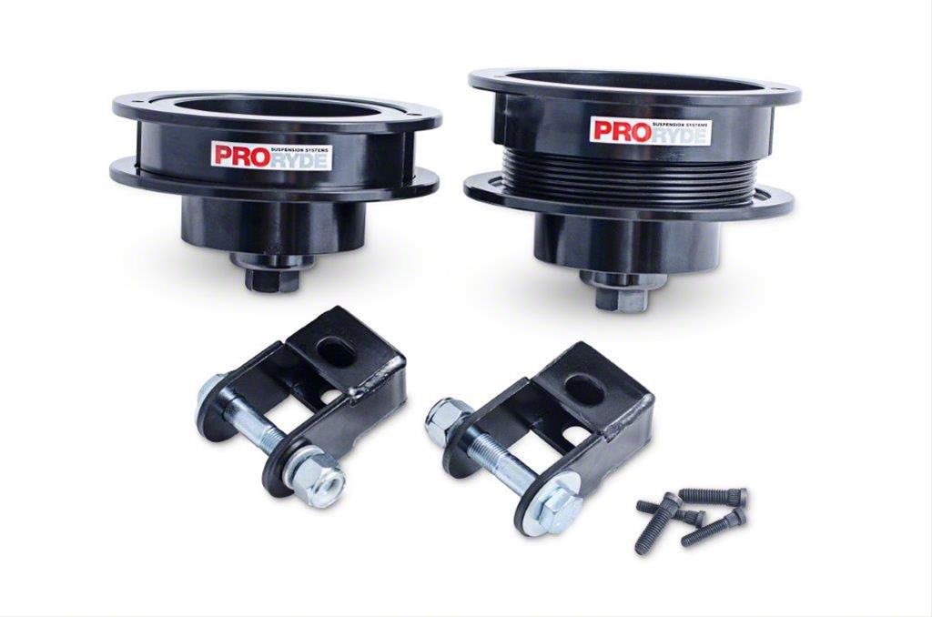 Improved Performance and Retained Comfort. The ProRYDE 1.50 to 2.50-Inch Adjustable Front Leveling Kit is a reliable and durable solution for leveling your vehicle's front end, enhancing its performance, and improving its appearance. The leveling of your front end allows you to accommodate larger tires and improve ground clearance. Moreover, this kit offers improved handling, better stability, and a smoother ride.