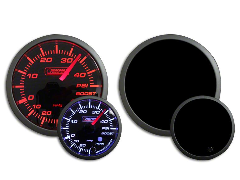 Ultimate Boost Gauge. Not only does this Prosport Dual Color Gauge provide an elegant dash look, but is also built for performance. The gauge features a -30-45 PSI boost, carefully calibrated to ensure accuracy. This boost meter has a red-alert feature, fully programmable to warn you when boost levels exceed reach risky levels.
