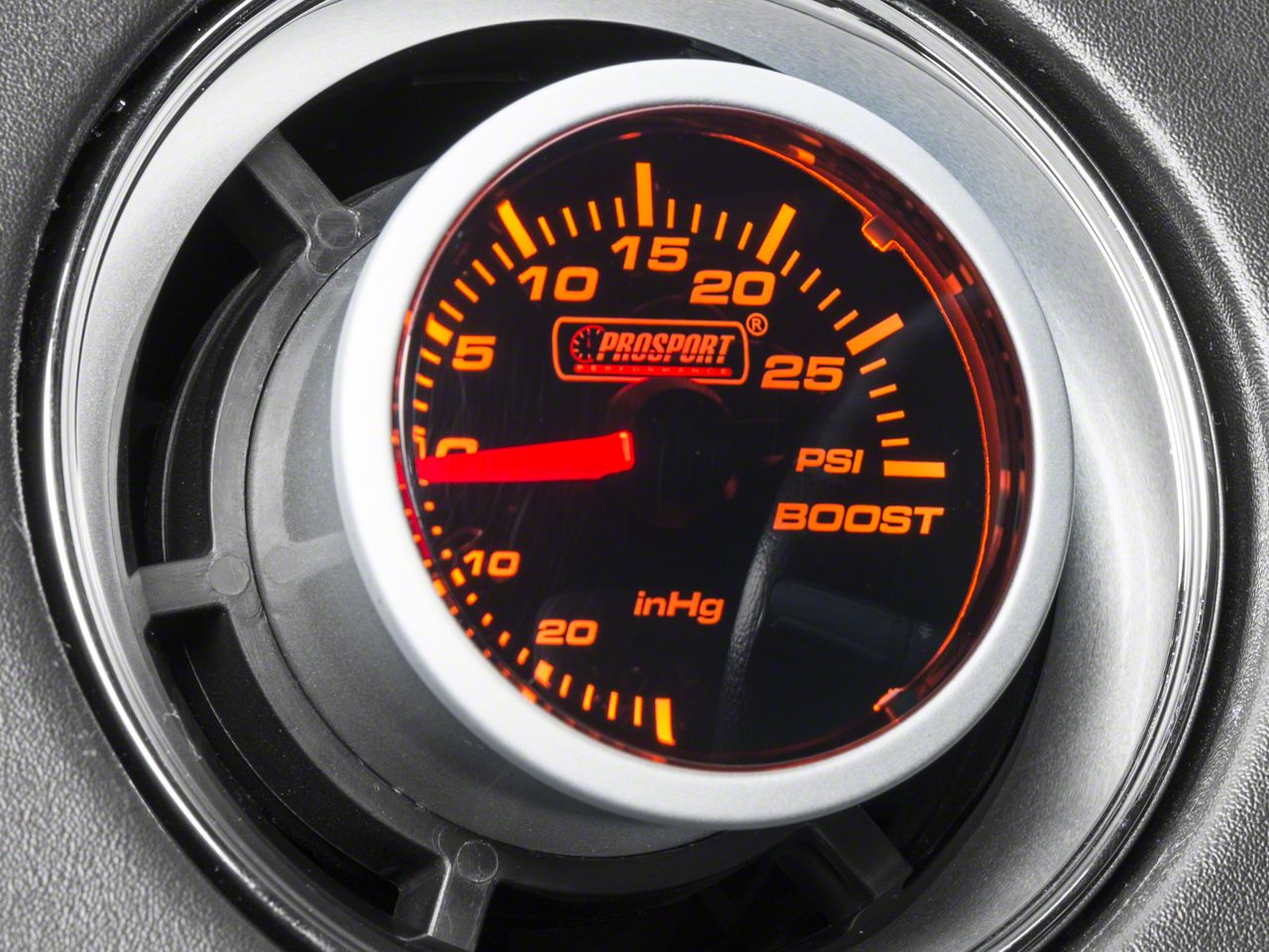 Mechanical Boost Reading. Easy tell when you're in boost and how much your engine is making with Prosport's Dual Color Boost/Vac Gauge. With a range of -30 inHg to 30 PSI, this Prosport Gauge accurately shows you the boost level, illuminated with white or amber lighting. Prosport's 30 PSI Boost/Vacuum Gauge comes with all of the necessary hardware to hook it up, leaving you with an easy to read gauge that perfectly fits in the interior of your F-150.