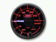 White Pointer and Clear Lens. The Prosport 52mm Premium Boost Gauge features a classic clear lens which reveals the dynamic dual color, white and amber display with a vibrant white pointer. Driven electrically by signals from the included sender, you get instant readings on the state of your boost. What’s more, there’s a programmable warning feature that lets you know as soon as boost breaches your preset level.