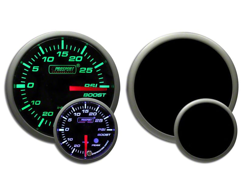 Premium Design and Construction. The Prosport Dual Color Premium Boost Gauge features a race-proven design backed by a hard wiring that provides ultimate structural integrity for extended functionality. With the data acquisition grade MAP sensor the gauge is built to withstand the most demanding situations while still delivering fast response times. The gauge works on a 12V or 16V connection which can be alternated with a digital option. For readability, the gauge features a white and green color combo with a white pointer so you can have a clear view even at night.