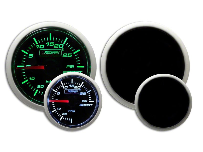 Application. Prosport's Green and White Mechanical Dual Color Pressure Boost Gauge fits all 1999-2026 Chevy Silverado 1500s perfectly.