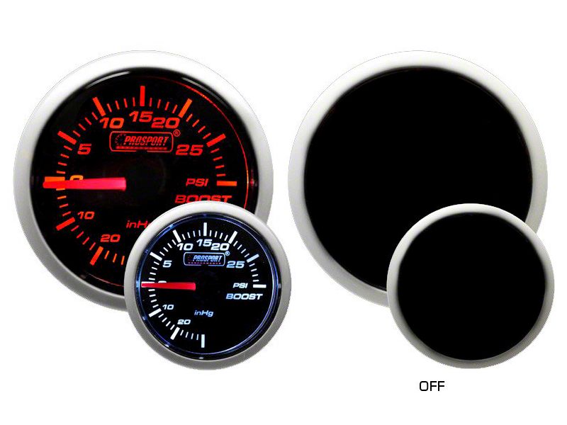 Track Your Boost. The Prosport Dual Color Mechanical Boost/Vac Gauge allows you to keep track of your super or turbocharged RAM's peak boost as you reach your maximum rpms. This extremely accurate mechanical gauge has a 270-degree sweep display that measures boost within the -30 to 30-PSI range. The gauge has a diameter of 52mm and is highly visible both day and night with its dual color amber and white readout.