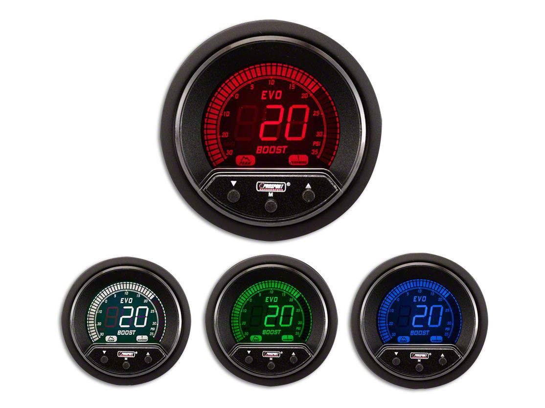 Advanced Features. Get the Maximum power performance from your Sierra’s engine by monitoring its acceleration more quickly and accurately with this Prosport Premium Evo Boost. This boost gauge comes with a four colors customization option (white, blue, amber, green) and a seven-stage dimming option to fit your day or night color and lighting preference.